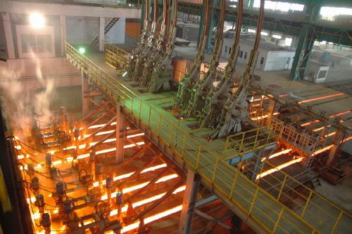 而其中的引錠桿的作用是在連鑄過程中拉動鋼坯,在鋼水凝結成鋼坯之后,被引錠桿從下方拉出。在將鑄坯拉出之后,下一步工序就是二次冷卻,在二次冷卻道中,會有冷卻水不停的噴射在鋼坯上,對鋼坯的冷卻,然后再將鋼坯送至拉矯機。拉矯機的主要作用就是將鑄坯拉直,讓其具有更好的特性,方便下一步的進行。就是切割設備,切割設備按照要求將鋼坯切割成不同形狀,切割完成之后,連鑄工藝算是完結了。
